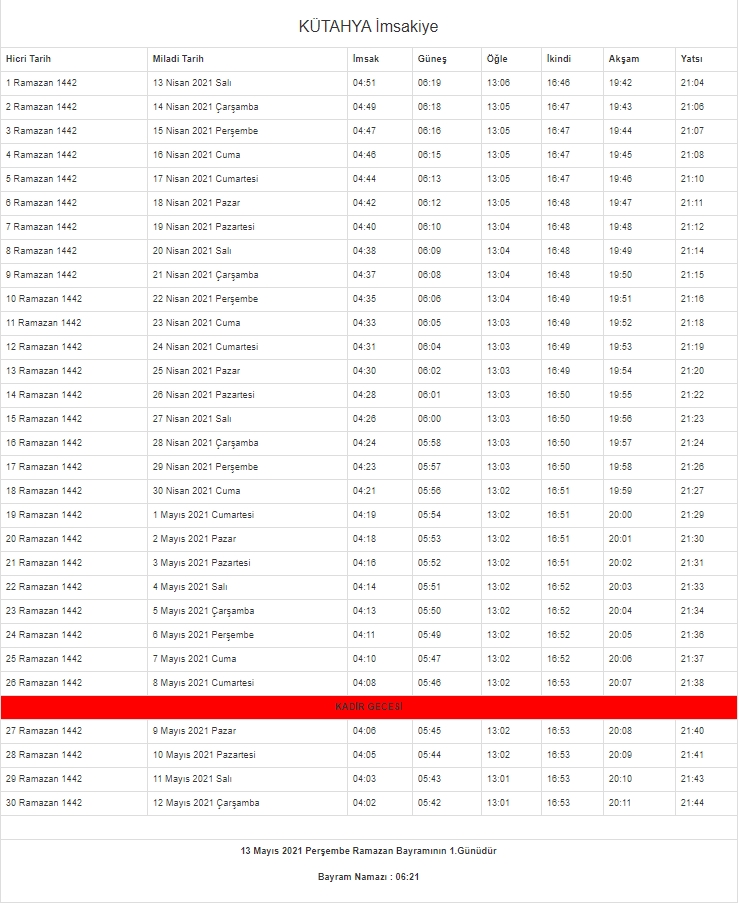 2021 oruç saat kaçta açılacak? Diyanet İşleri Başkanlığı'nın resmi internet sitesinden il il imsakiye takvimi yayınlandı. İşte il il imsakiye 2021 - İftar ve sahur vakitleri...