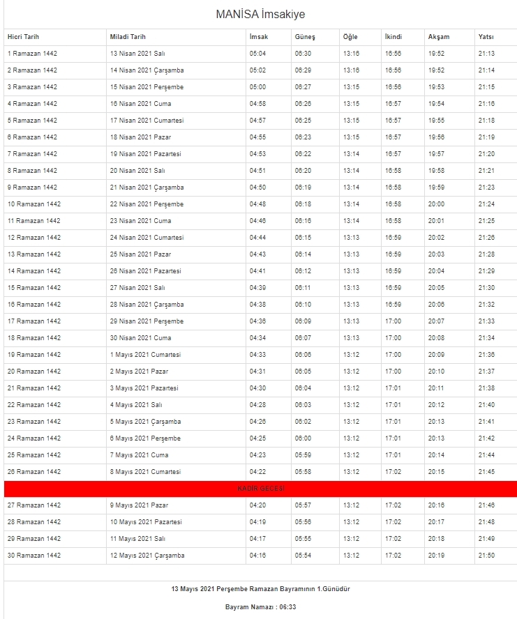 2021 oruç saat kaçta açılacak? Diyanet İşleri Başkanlığı'nın resmi internet sitesinden il il imsakiye takvimi yayınlandı. İşte il il imsakiye 2021 - İftar ve sahur vakitleri...