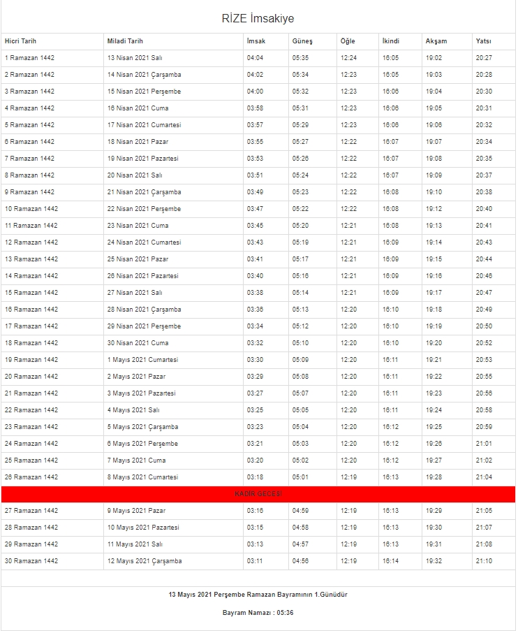 2021 oruç saat kaçta açılacak? Diyanet İşleri Başkanlığı'nın resmi internet sitesinden il il imsakiye takvimi yayınlandı. İşte il il imsakiye 2021 - İftar ve sahur vakitleri...