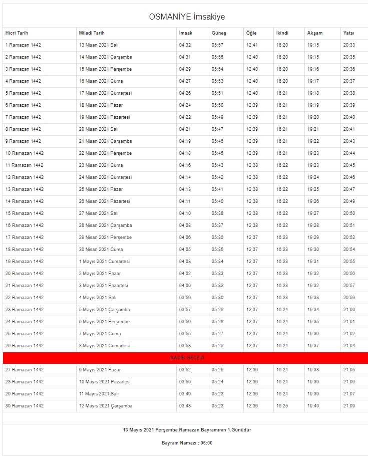 2021 oruç saat kaçta açılacak? Diyanet İşleri Başkanlığı'nın resmi internet sitesinden il il imsakiye takvimi yayınlandı. İşte il il imsakiye 2021 - İftar ve sahur vakitleri...