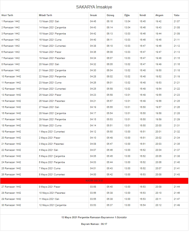 2021 oruç saat kaçta açılacak? Diyanet İşleri Başkanlığı'nın resmi internet sitesinden il il imsakiye takvimi yayınlandı. İşte il il imsakiye 2021 - İftar ve sahur vakitleri...