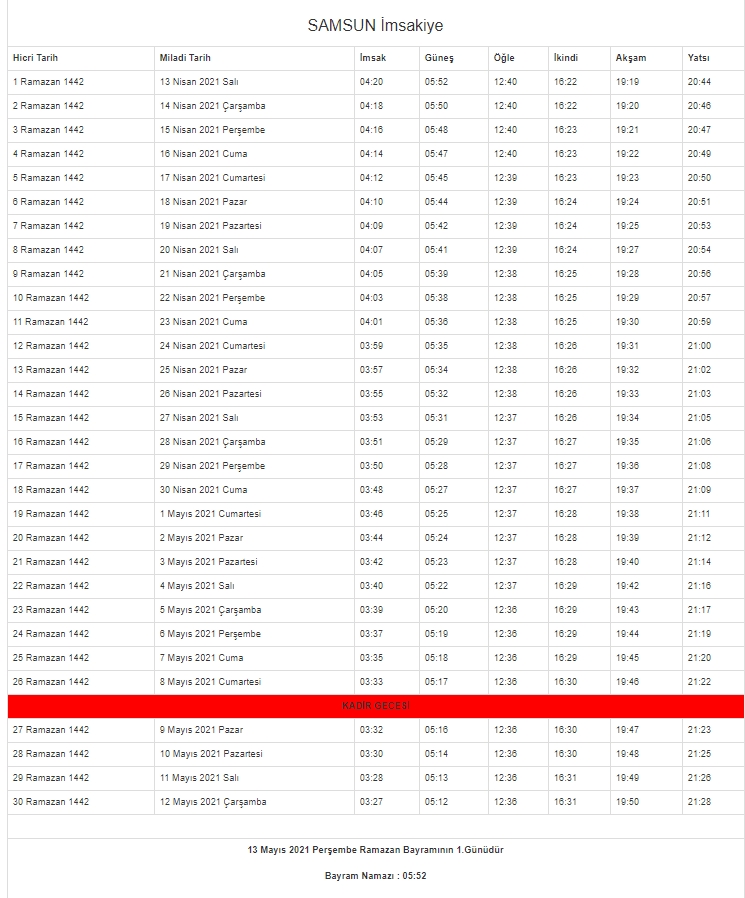 2021 oruç saat kaçta açılacak? Diyanet İşleri Başkanlığı'nın resmi internet sitesinden il il imsakiye takvimi yayınlandı. İşte il il imsakiye 2021 - İftar ve sahur vakitleri...