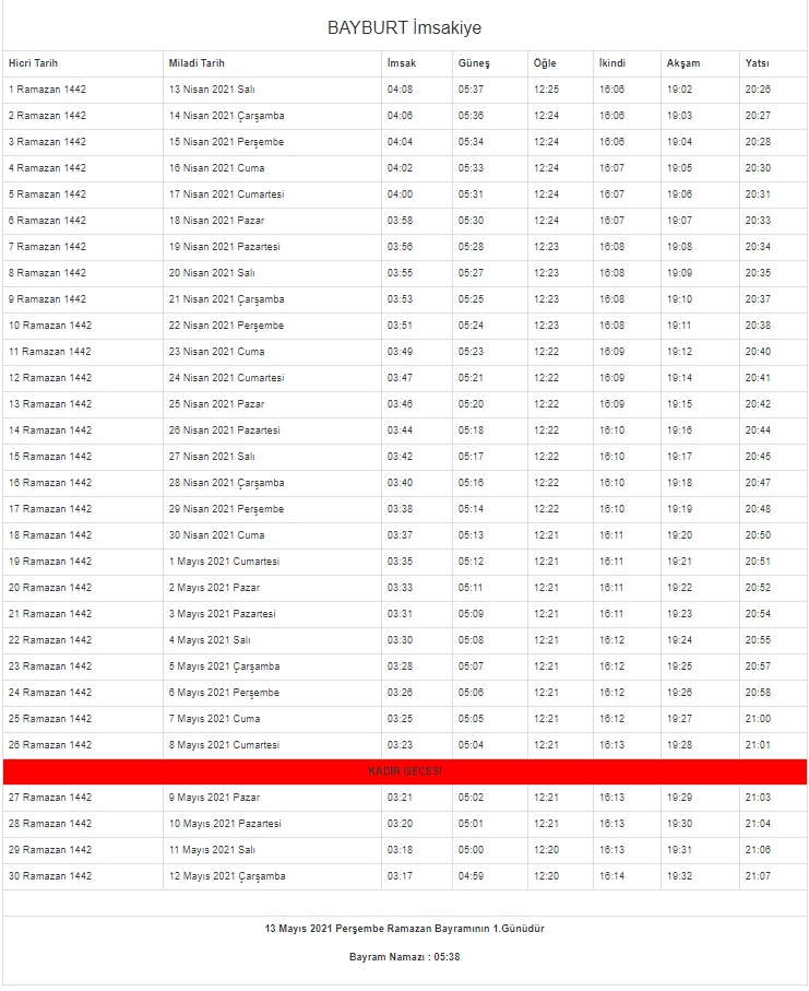 2021 oruç saat kaçta açılacak? Diyanet İşleri Başkanlığı'nın resmi internet sitesinden il il imsakiye takvimi yayınlandı. İşte il il imsakiye 2021 - İftar ve sahur vakitleri...