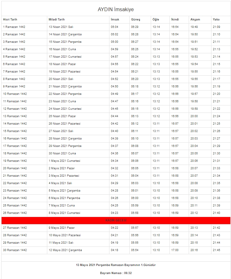 2021 oruç saat kaçta açılacak? Diyanet İşleri Başkanlığı'nın resmi internet sitesinden il il imsakiye takvimi yayınlandı. İşte il il imsakiye 2021 - İftar ve sahur vakitleri...