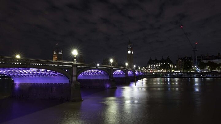 İngiltere'de köprüler ulusal yas sebebiyle mor renge büründü