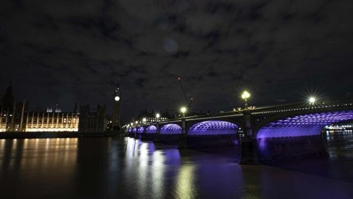 İngiltere'de köprüler ulusal yas sebebiyle mor renge büründü