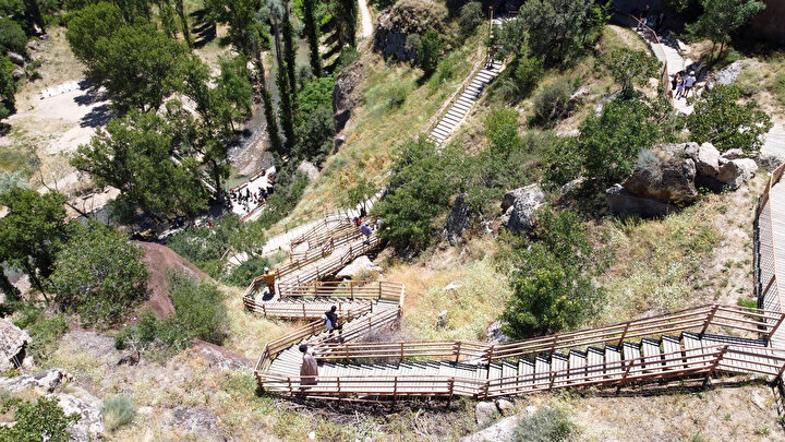 Kaya oyma mekanları, kiliseler ve bitki örtüsüyle her mevsim ziyaretçilerini kendisine hayran bırakan 14 kilometre uzunluğundaki Ihlara Vadisi'ne 394 basamaklı merdivenle iniliyor.