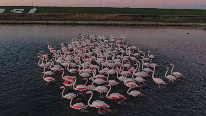İstanbul'da flamingo sürüsü: Kanat açıklıkları 1,60 metreyi buluyor