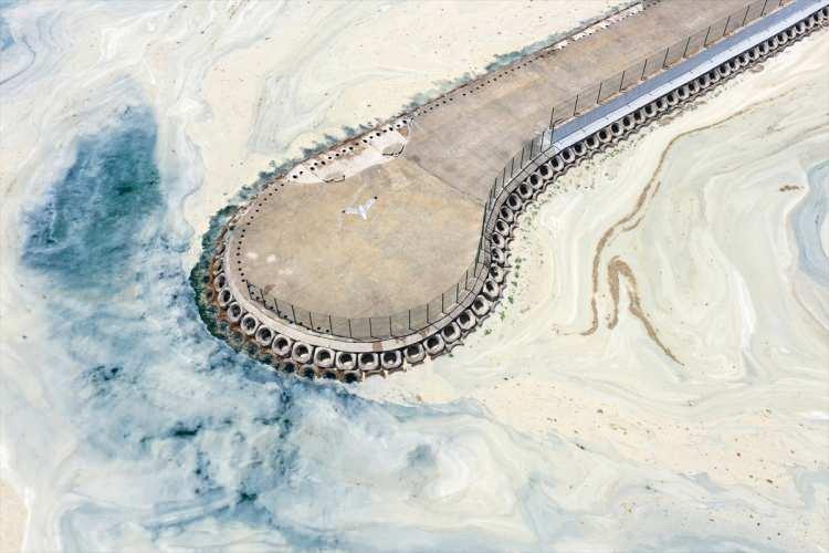 Dün yağış ve rüzgar nedeniyle müsilajın görülmediği Caddebostan Sahili'nde, bugün sabah saatlerinde deniz salyaları yeniden etkili oldu. Geniş bir alana yayılan müsilaj havadan da görüntülendi.