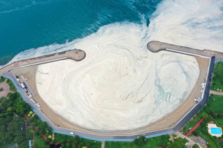 Marmara Denizi kıyılarını kaplayan müsilajın (deniz salyası) Caddebostan Sahili'ndeki yoğunluğu artarken, ekiplerin temizleme çalışmaları devam ediyor.