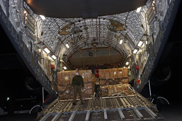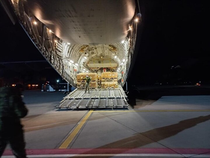 Askeri yardımları taşıyan Royal Canadian Air Force’a bağlı C-17 tipindeki uçak, Ukrayna’nın Lviv şehrine indi.