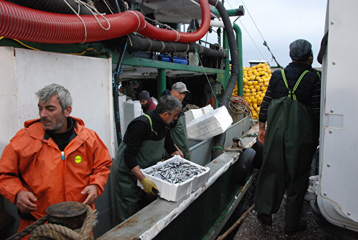 Bartın'ın Amasra ilçesi açıklarında avlanan balıkçılar, yaklaşık 375 ton hamsiyle limana döndü. Limana gelenlere ücretsiz hamsi dağıtıldı.