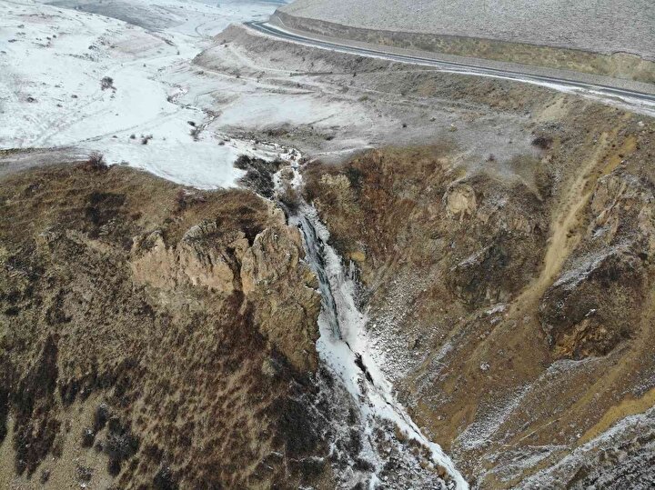 Kars'ın soğuğu şelale dondurdu. Soğukların etkili olduğu kentte 75 metre yükseklikten aşağı dökülen Susuz Şelalesi buz tuttu. Buz tutan şelale havadan görüntülendi.