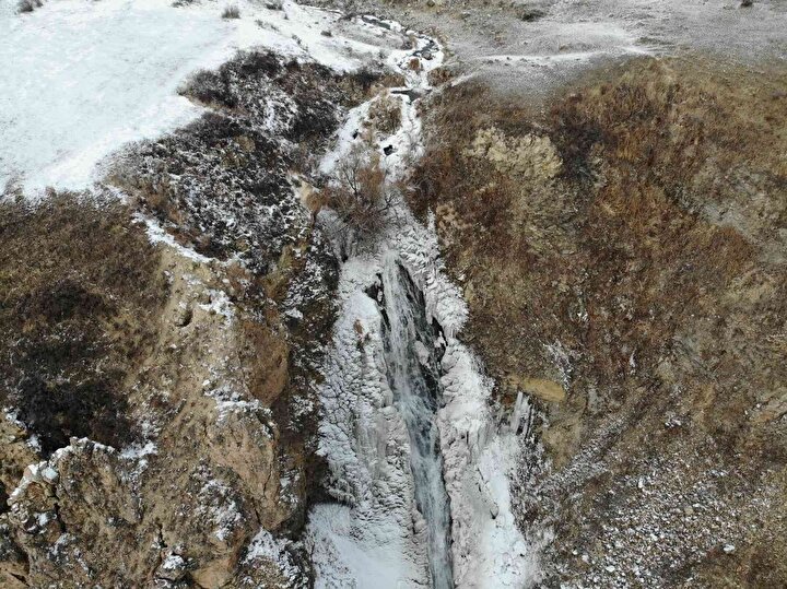 Kars'ın soğuğu şelale dondurdu. Soğukların etkili olduğu kentte 75 metre yükseklikten aşağı dökülen Susuz Şelalesi buz tuttu. Buz tutan şelale havadan görüntülendi.