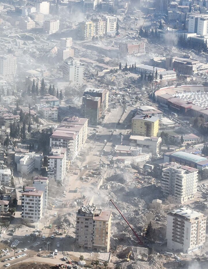 Kahramanmaraş merkezli depremlerin ardından binlerce binanın yerle bir olduğu kent, helikopterle havadan görüntülendi. Eski mahallelerdeki 40-50 yıllık binalar yıkılırken, yeni imarlı bölgelerde yapılan yüksek katlı binaların ayakta kaldığı gözlendi.