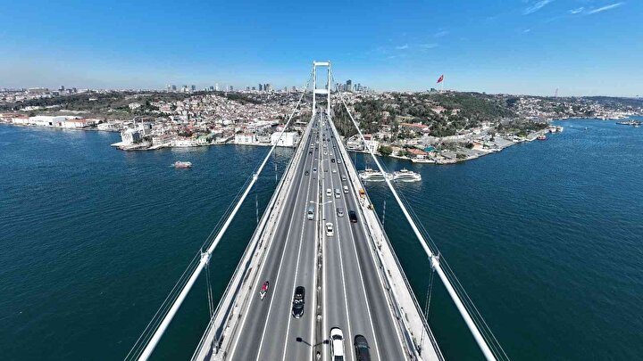 Avrupa ve Anadolu yakalarını birbirine bağlayan İstanbul’un en önemli sembollerinden 15 Temmuz Şehitler Köprüsü ışıklandırma sistemlerine bakım ve onarım çalışmaları yapılıyor. Onlarca metre yükseklikte köprünün çelik halatlarına tırmanan işçiler ışıklandırma sistemlerini yeniliyor.