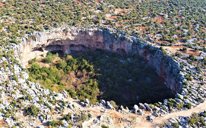 "Mersin'deki 3 tane obruktan birisi. Cennet Cehennem ile Kanlıdivane meşhur. Aşağı Dünya Obruğu en az bilineni. Roma ve Bizans döneminde kalıntılarla etrafı çevrilmiş. 70 metre derinliğine 150 metre geniş ağza sahip bir obruk. Geçmiş zamanda yerleşke olarak da kullanılmış. Genel itibariyle etrafa baktığınızda eski Roma ve Bizans dönemine ait kalıntıları görürsünüz. Doğal bir obruk olduğu için içeride eko sistem devam ediyor. Dış dünyadan bağımsız bir şekilde içeride farklı bir dünya ile karşılaşıyorsunuz. Diğer obruklar kadar tanınmıyor bence insan eli değmediği için daha doğal ve daha güzel."