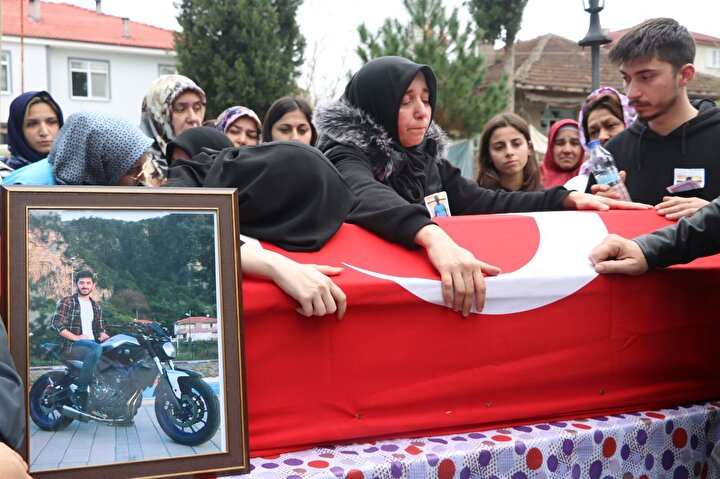 Motosiklet tutkunu madencinin ailesi, tabutun başında taziyeleri kabul etti.