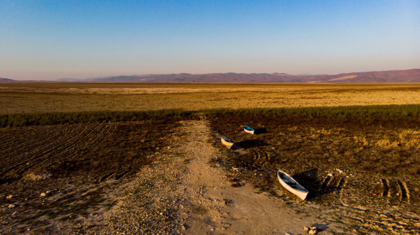 Küresel ısınma ve gölü besleyen kaynakların baraja dönüştürülmesi gibi nedenlerden dolayı kuruyan göl adeta çöle dönüştü.