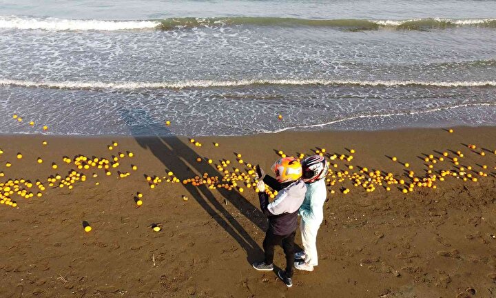 Mersin'de sahil portakal doldu: Turistler şaşkına döndü