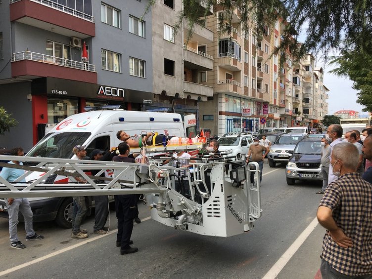 Rize'nin Ardeşen ilçesinde bulunan 6 bir katlı binanın çatısını onarırken o esnada dengesini kaybeden 27 yaşındaki Halil İbrahim Özkan hem çatıda asılı kaldı, hem de ayağı kırıldı.