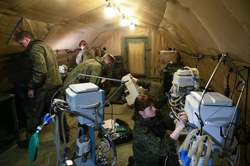 Rusya Savunma Bakanlığı, Dağlık Karabağ'da bulunan Stepanakert şehri çevresinde, hem Rus barış güçlerine hem de sivil halka yardım etmeye hazır olan bir sahra hastanesi kuruldu.