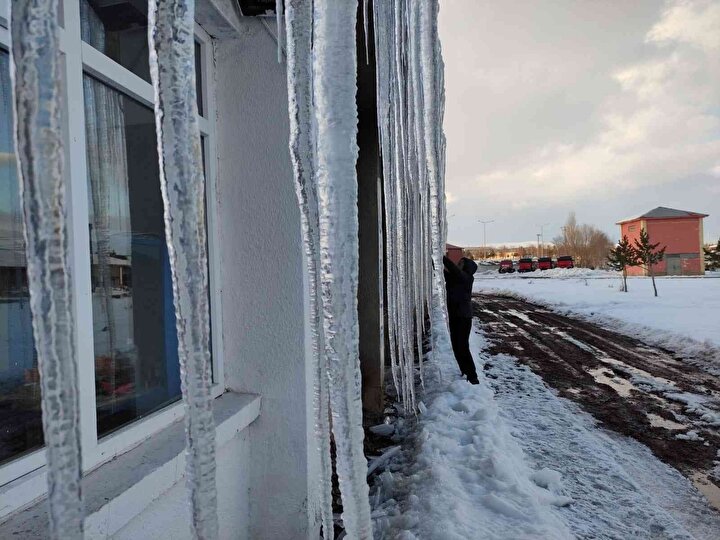 Kar yağışı ve ardından dondurucu soğukların devam ettiğini söyleyen Zeki Altun, 'Bugün 28 Mart 2022 ve gördüğünüz gibi soğukların etkisiyle dev buz sarkıtları oluştu. Mart ayının sonlarına geldiğimiz bugünlerde dahi soğukla mücadelemiz devam ediyor. Çilemiz bitmiyor. Burada hayat bu kadar zor' dedi.