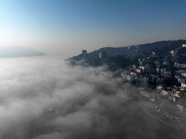 İstanbul'u etkisi altına alan sis, Fatih Sultan Mehmet Köprüsü'nde masalsı bir görüntü ortaya çıkardı. Adeta sis bulutunun üzerinde asılı duran Fatih Sultan Mehmet Köprüsü ve üzerinden geçen araçlar, eşsiz bir manzara oluşturdu.