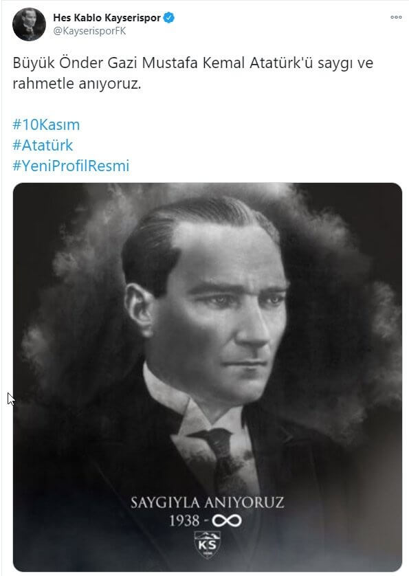 Futbol kulüpleri, vefatının 82. yılında Türkiye Cumhuriyeti Kurucusu Ulu Önder Atatürk'ü andı. İşte futbol kulüpleri tarafından 10 Kasım Atatürk'ün vefatı için yapılan sosyal medya paylaşımları...