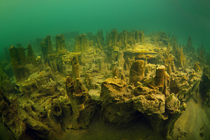 Van Gölü'nde 2-3 kilometrelik alanı kaplayan mikrobiyalitler, su altında dalış gerçekleştirenlerin ilgisini çekiyor.