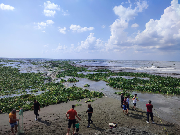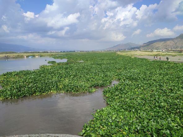 Hatay`ın inci gerdanı olarak bilinen Asi Nehri`nin bazı kısımlarını kaplayan `su canavarı` olarak bilinen su sümbülleri, bugün yaşanan sağanak yağış sonrası nehrin denize döküldüğü bölgeyi istila etti.