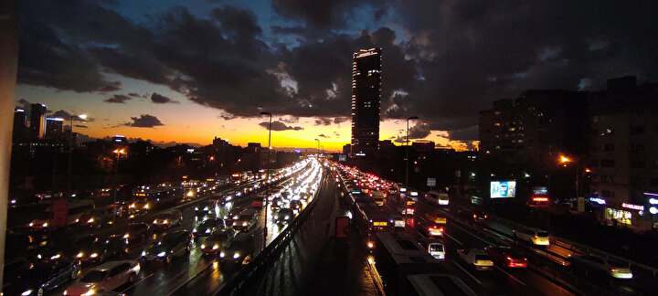 İstanbul' da akşam saatlerinde etkili olan yağmurun da etkisiyle trafik yoğunluğu oluştu.