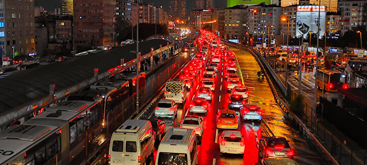 İstanbul' da akşam saatlerinde etkili olan yağmurun da etkisiyle trafik yoğunluğu oluştu.