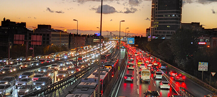 İstanbul' da akşam saatlerinde etkili olan yağmurun da etkisiyle trafik yoğunluğu oluştu.