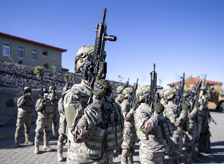Teknolojinin tüm imkanlarından yararlanarak yağmur, çamur, kar, kış demeden zor arazi ve iklim koşullarına rağmen Türkiye'nin İran sınırını koruyan Türk Silahlı Kuvvetleri (TSK) mensupları, mevzilerinde elleri tetikte gece gündüz vatan nöbetini kararlılıkla sürdürüyor.