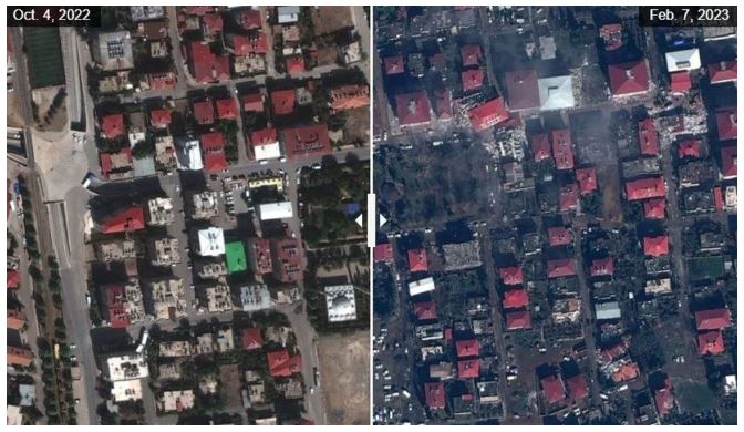 Kahramanmaraş depremine ilişkin ilk uydu görüntüleri yayınlandı. Yayınlanan ilk görüntü İslahiye ve Nurdağı ilçelerine ait. Görüntüde Gaziantep'in ilçelerinde ciddi yıkım olduğu görülüyor.