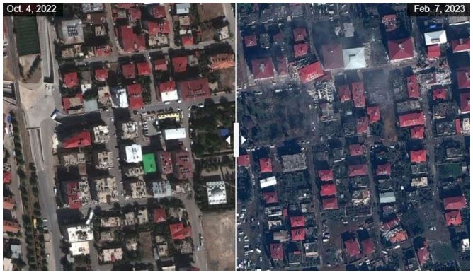 Kahramanmaraş depremine ilişkin ilk uydu görüntüleri yayınlandı. Yayınlanan ilk görüntü İslahiye ve Nurdağı ilçelerine ait. Görüntüde Gaziantep'in ilçelerinde ciddi yıkım olduğu görülüyor.