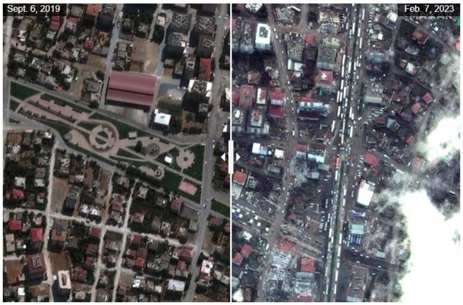 Kahramanmaraş depremine ilişkin ilk uydu görüntüleri yayınlandı. Yayınlanan ilk görüntü İslahiye ve Nurdağı ilçelerine ait. Görüntüde Gaziantep'in ilçelerinde ciddi yıkım olduğu görülüyor.