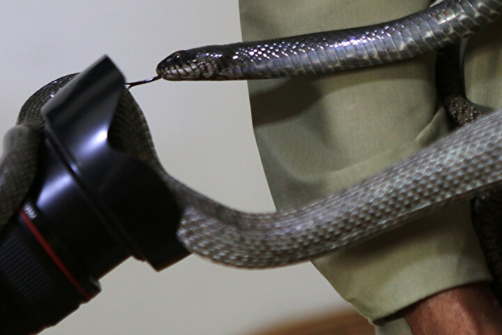 Yılanlarla beraber yaşıyor!