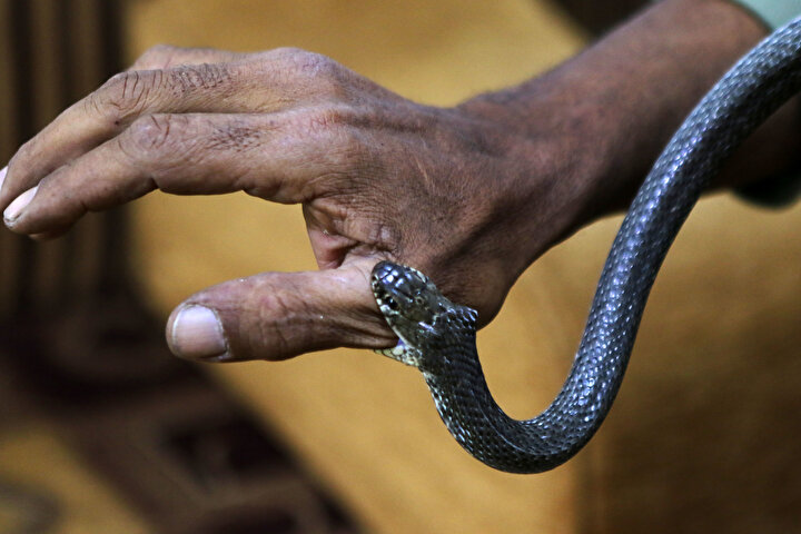 Yılanlarla beraber yaşıyor!