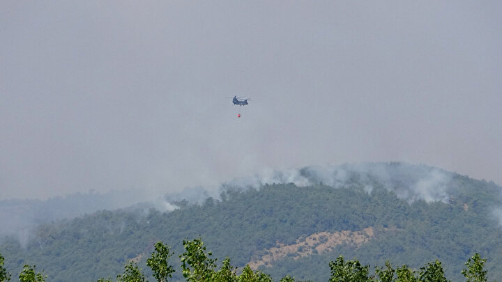 Söndürme çalışmaları Türkiye tarafında, Edirne'nin Meriç ilçesine bağlı Adasarhanlı köyünden de görünüyor.