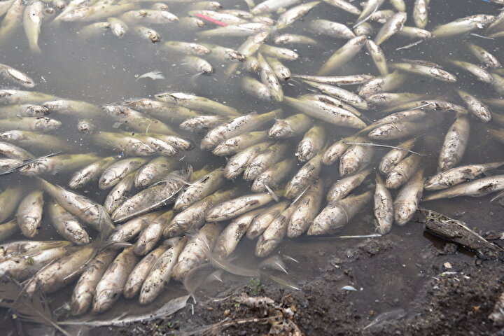 Toplu ölümlerin yaşandığı bölgeye giden ekipler, balık ölümlerinin sebebinin incelenmesi amacıyla sudan numune aldı.