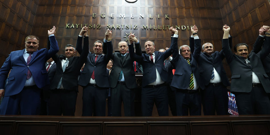 Cumhurbaşkanı Erdoğan partisinin TBMM grup toplantısında yaptığı konuşmanın ardından, AK Parti'ye katılacak olan 10 belediye başkanına rozet taktı.