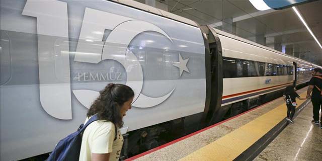Cumhurbaşkanlığı İletişim Başkanlığı ile TCDD Taşımacılık AŞ Genel Müdürlüğünün iş birliğiyle 15 Temmuz Demokrasi ve Milli Birlik Günü temasıyla giydirilen yüksek hızlı tren (YHT), bu yılki ilk seferi için Ankara YHT Garı'ndan hareket etti. Trenin üzerinde "Ay yıldız uğruna... Türkiye aşkına" ifadelerine yer verildi.