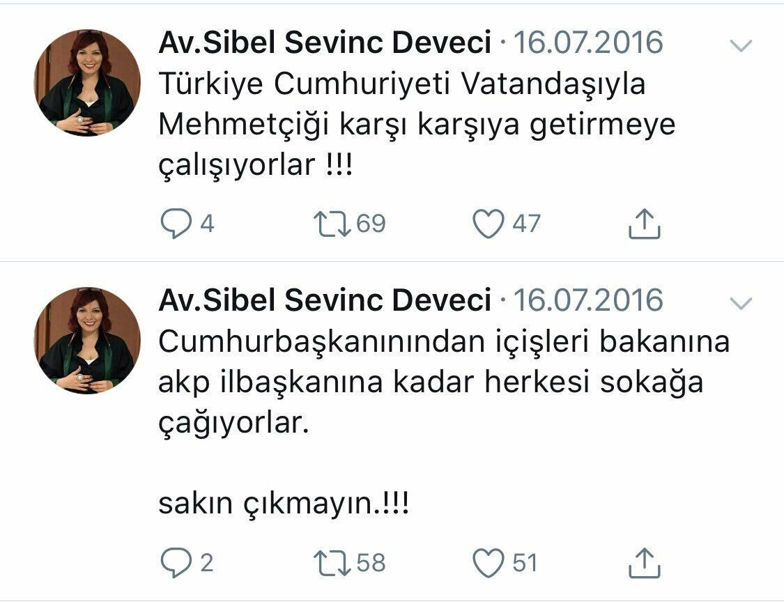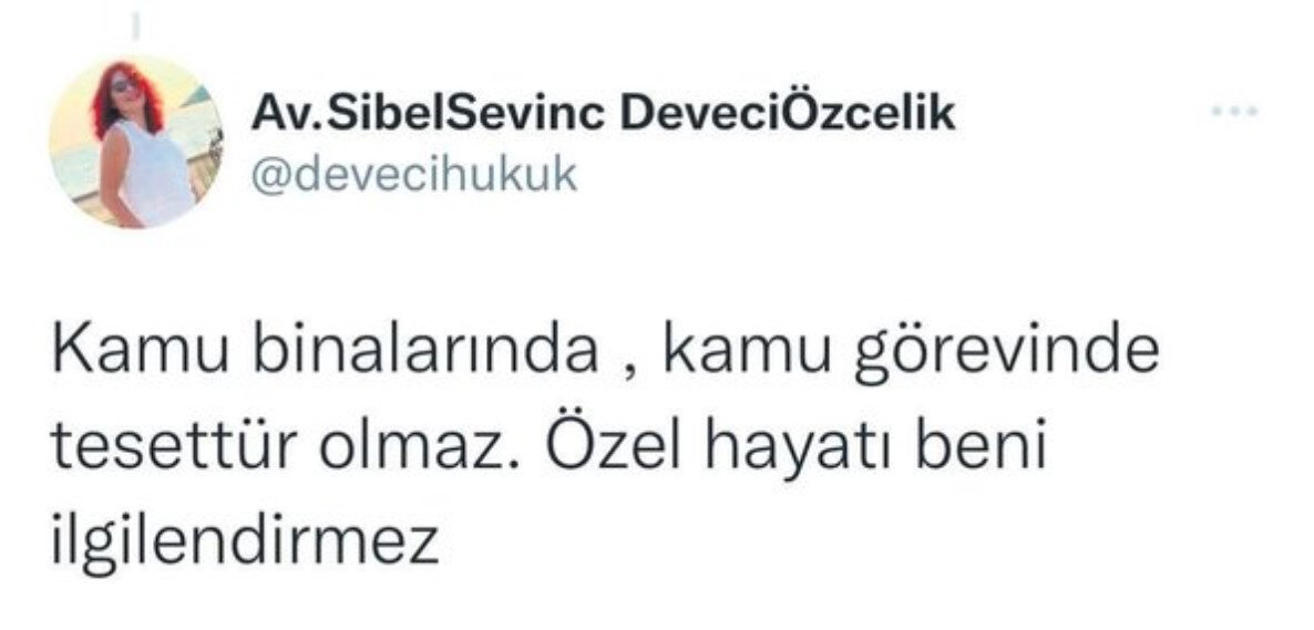 Dökmen'in skandal çıkışı sonrası benzer bir açıklama daha dikkat çekti. AK Partilileri hedef alan açıklamalarıyla bilinen avukat Sibel Sevinç de, başörtülü hakim ve savcıları hedef alan paylaşımlarda bulundu.