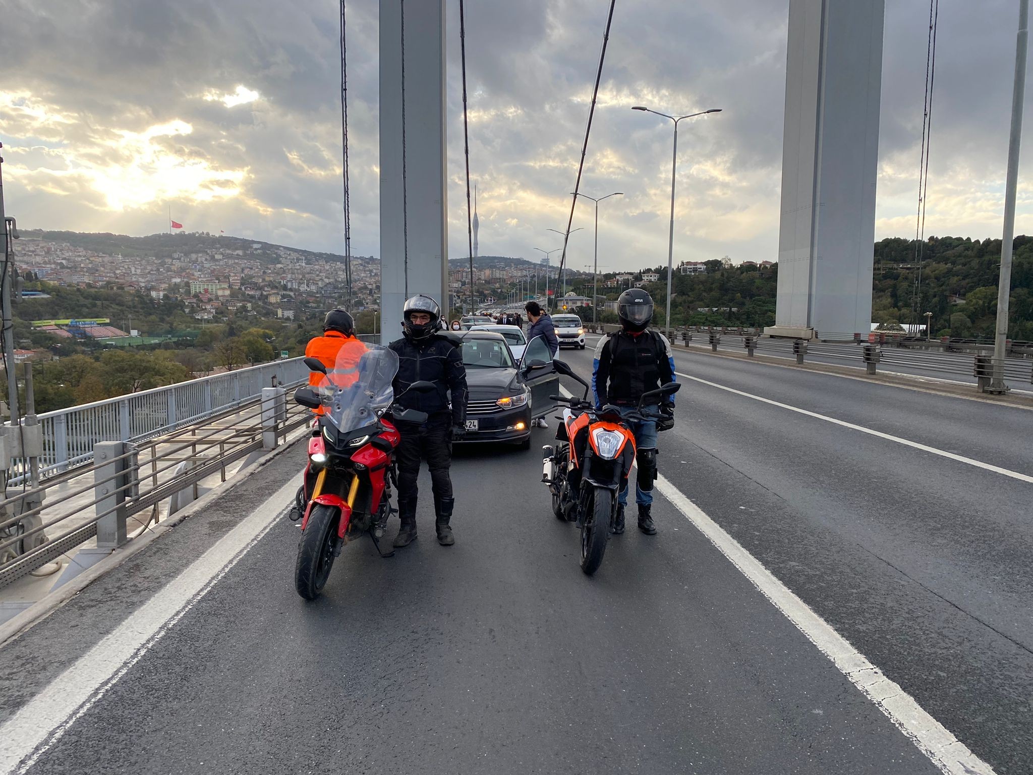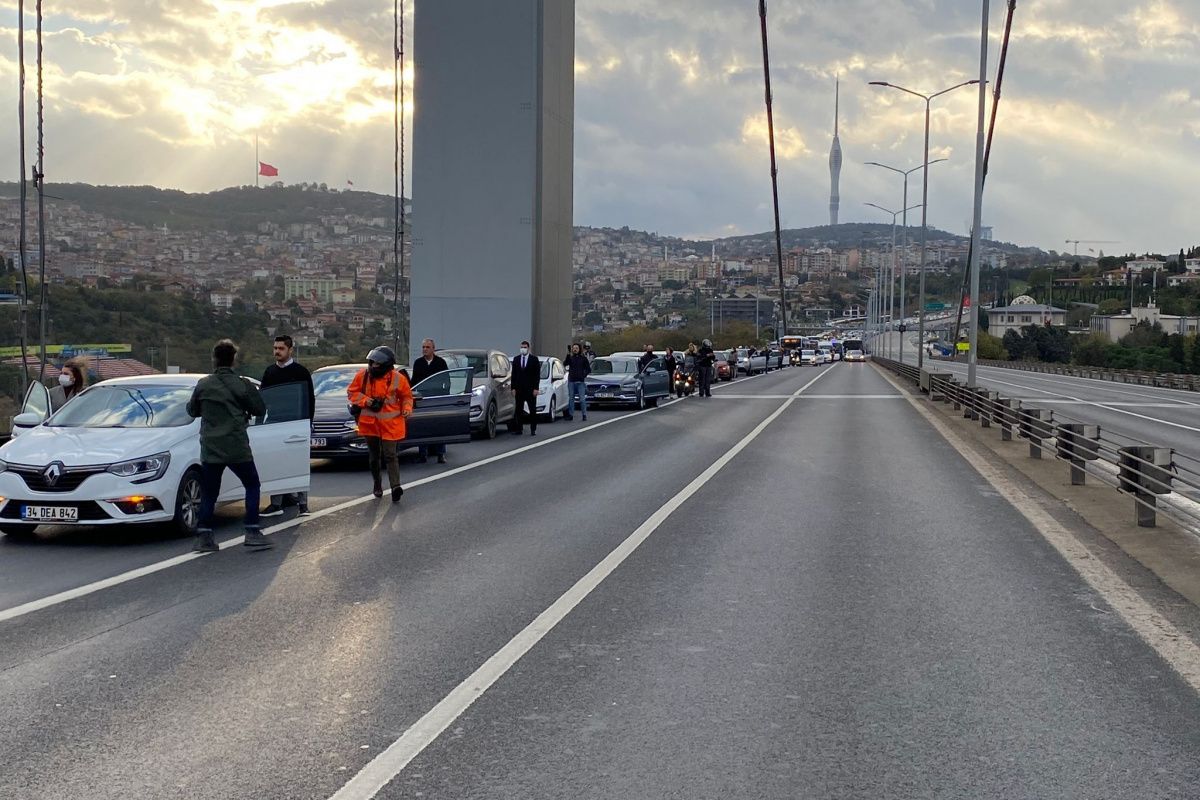 15 Temmuz Şehitler Köprüsü'nde de saatler 09.05'i gösterdiğinde sürücüler araçlarından inerek Ata'ya saygı duruşunda bulundu. Bir dakikalık saygı duruşunun ardından vatandaşlar araçlarına binerek yollarına devam edip köprüden ayrıldı.