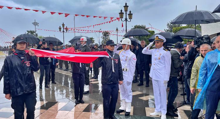 Atatürk ile silah arkadaşlarının heykellerinin de yer aldığı alandaki törende, İstiklal Marşı okundu, saygı duruşunda bulunuldu. Ardından Atatürk'ün 19 Mayıs 1919'da karaya çıkmasını sembolize eden Türk bayrağı, bir deniz subayı, iki deniz eri ve iki piyade askeri tarafından taşınarak karaya çıkarıldı.