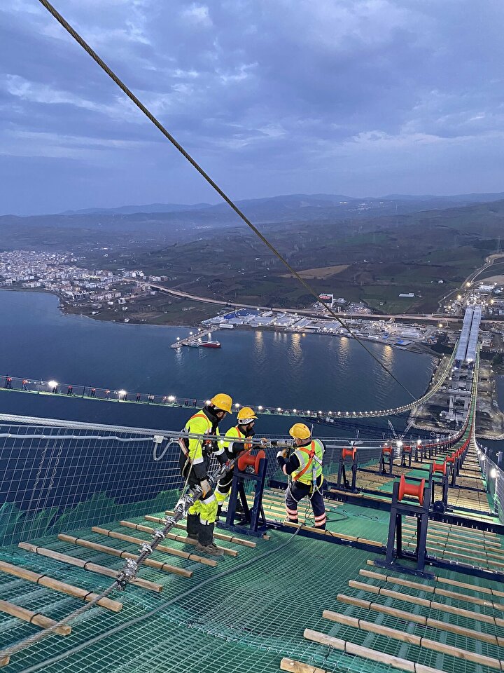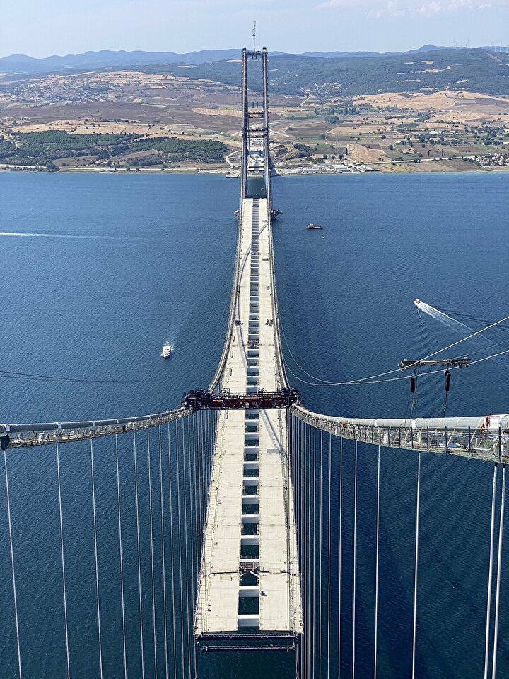 Bu uzunluğu ile tamamlandığında 'dünyanın en büyük' orta açıklıklı asma köprüsü unvanına sahip olacaktır. Yaklaşım viyadükleri ile beraber toplam geçiş uzunluğu ise 4 bin 608 metreye ulaşmaktadır."