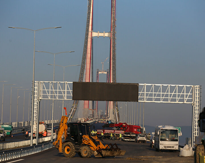 Ana kablo imalatları kapsamında orta açıklıklarda 288, yan açıklıklarda ilave 16 kablo demeti ile toplam 304 kablo demetinden oluşan ana kablo montajı ile tabliyeleri ana kabloya bağlayan kelepçe ve askı halatı montaj çalışmaları da sonlandı. Ana kabloyu dış etkilerden de koruyacak tel sargı çalışmaları sürüyor.