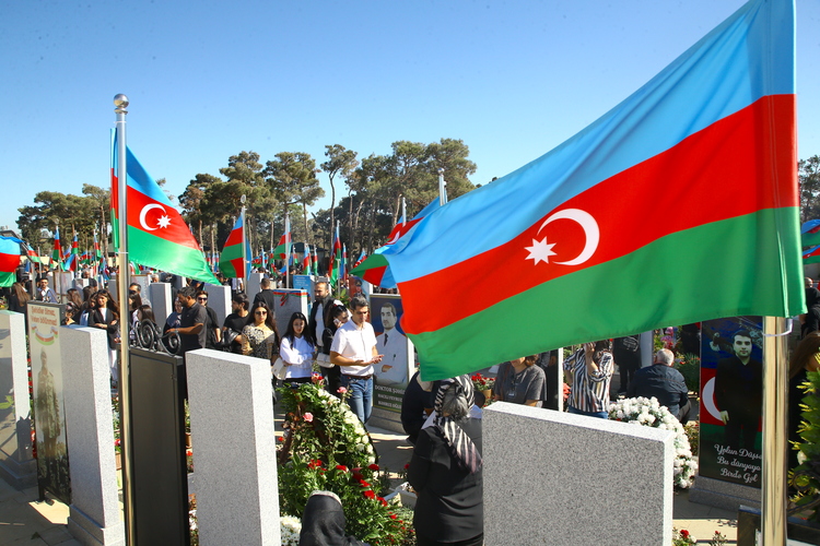 Azerbaycanlılar, 2. Karabağ Savaşı'nın başlangıç gününün yıl dönümünde şehitliklere akın etti.